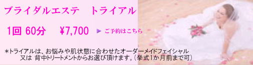 *お肌の状態やお悩みに応じて、フェイシャルの内容はアレンジ可能です。トライアル時にご相談下さい。 |