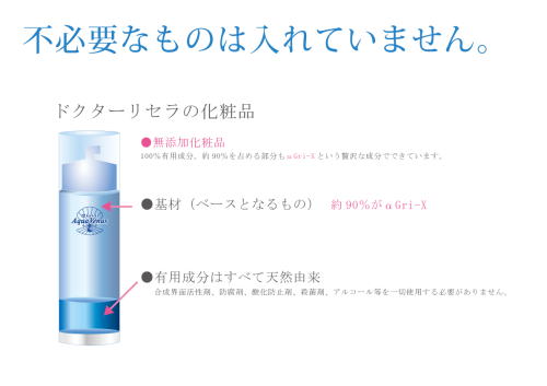 全てにα Gri-X(アルファグリックス)を使用し、ボトルの中は全て有用成分になっています。